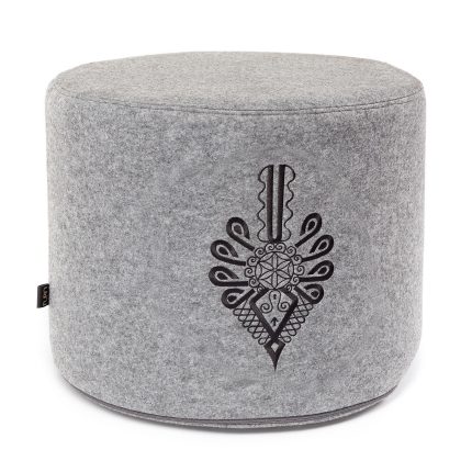 Pufa została wykonana z szarego filcu. Materiał pozostaje niezwykle odporny na ścieranie oraz zabrudzenia. Cechą charakterystyczną siedziska jest haft w postaci góralskiej parzenicy – dzięki niemu możesz poczuć w swoim mieszkaniu niezwykle folkowy styl. Takie pufy świetnie sprawdzą się nie tylko w nowoczesnych apartamentach, lecz także w obiektach noclegowych, takich jak hotele, pensjonaty lub domki letniskowe.