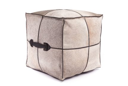 Pufa ma kilka bardzo delikatnych detali ze skóry w paskach i w miejscach, gdzie kawałki skóry bydlęcej są zszyte. Jej wypełnienie stanowi przewiewna pianka. Pufa może służyć zarówno jako krzesło, jak i stołek, może być wykorzystywana do wielu różnych celów. Wszystkie nasze pufy ze skóry bydlęcej są unikatowe i różnią się kolorem. Pufa z bydlęcej skóry jest wyjątkowym przedmiotem, który jest zarówno piękny, jak i w 100% unikalny.