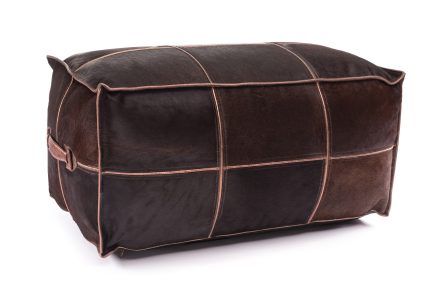 Ta piękna kwadratowa pufa wykonana jest z przepięknej skóry bydlęcej i skóry z Argentyny. Pufa ma kilka drobnych detali z tej skóry i pasuje do wielu różnych wnętrz.