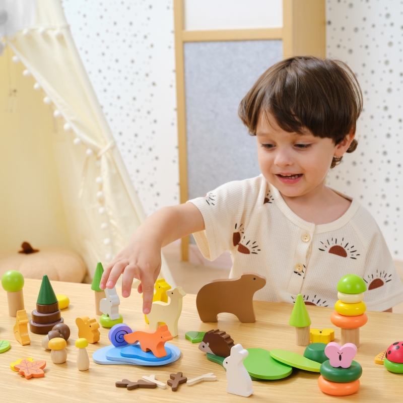 • – Zabawka typu „open-ended” (luźne elementy) idealna dla metody Montessori