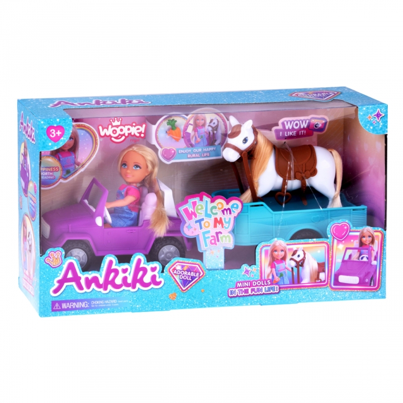 Wyrusz na wiejskie przygody z zestawem Kiki Lalka z Koniem, Samochodem i Przyczepą !