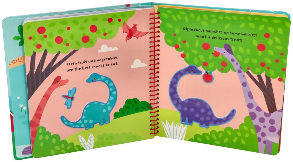 Książeczka z naklejkami silikonowymi dinozaury. Zestaw zawiera: