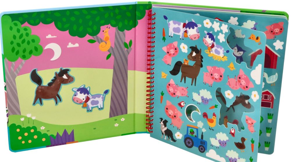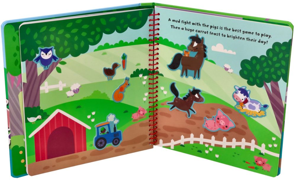 Książeczka z naklejkami silikonowymi farma. Zestaw zawiera: