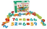 Komplet zawiera 60 sztuk drewnianych magnetycznych cyferek: