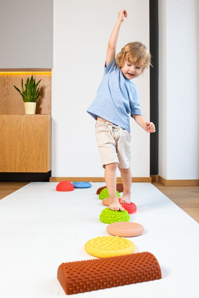 Elementy sensoryczne zestawu można ustawiać w dowolnej kombinacji, tworząc tym samym niepowtarzalne tory przeszkód dzięki czemu zabawa nie będzie monotonna i nie będzie się nudzić.