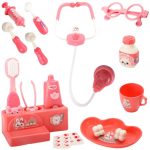 - – Bogaty komplet narzędzi: lusterko, wiertło, szczypce, strzykawka, pinceta — dopasowane do małych dłoni